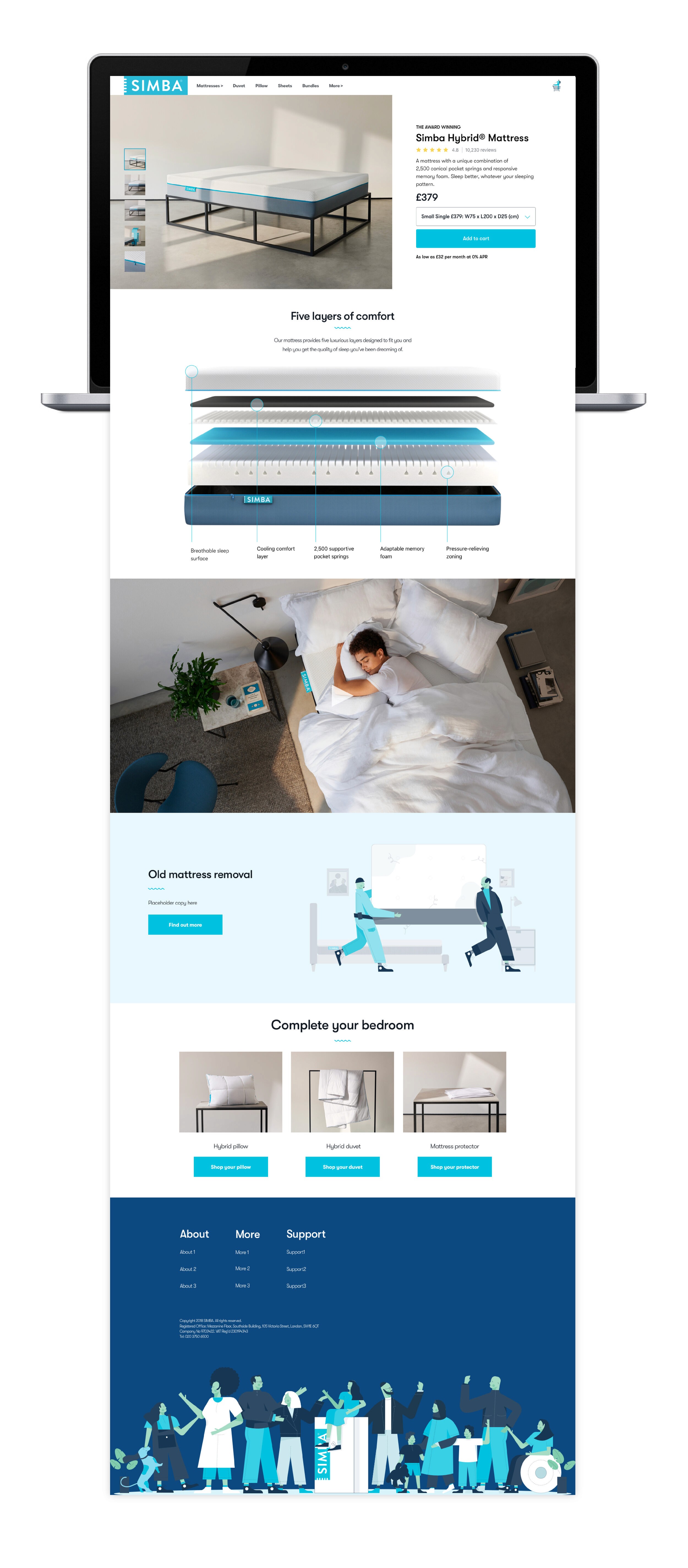 Product images had to stand alone as tasteful pieces, instantly recognisable as Simba's. User research highlighted the importance of showcasing emotional benefits in our visuals.